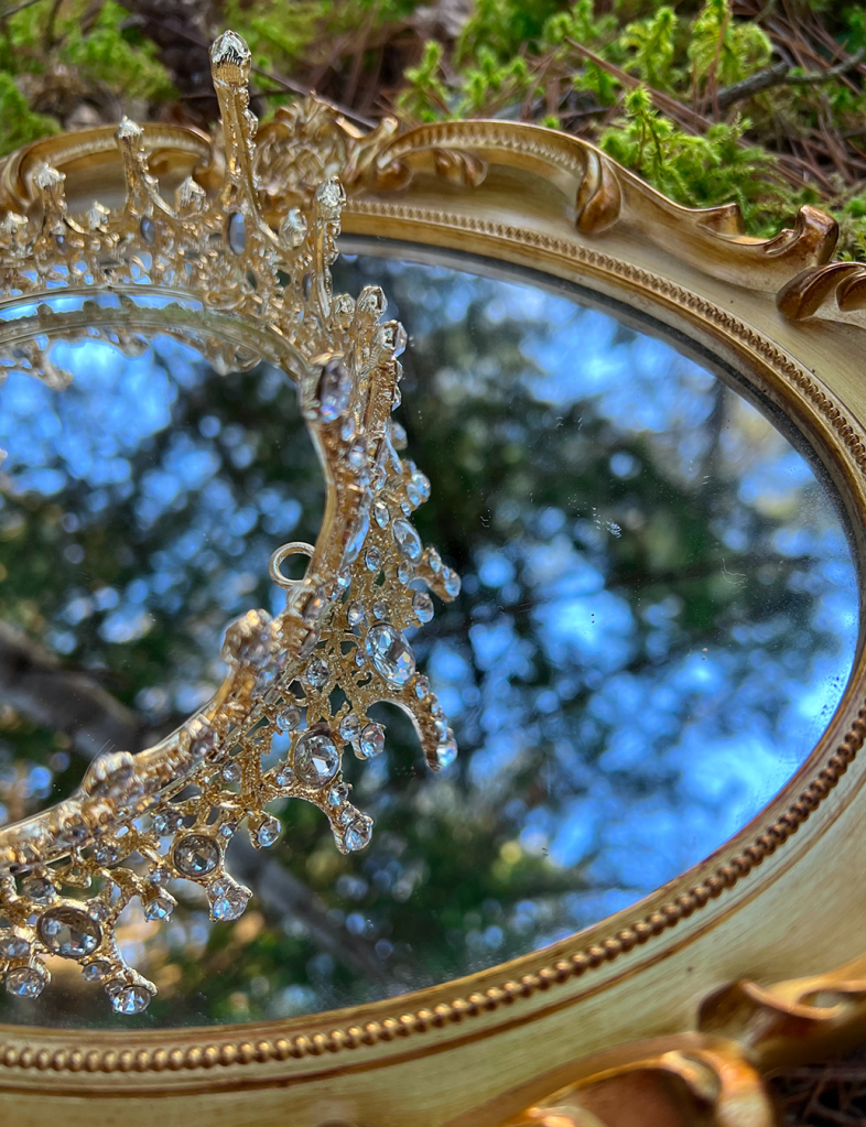 - Any props (in this case, a crown, glass slipper, and mirror)
